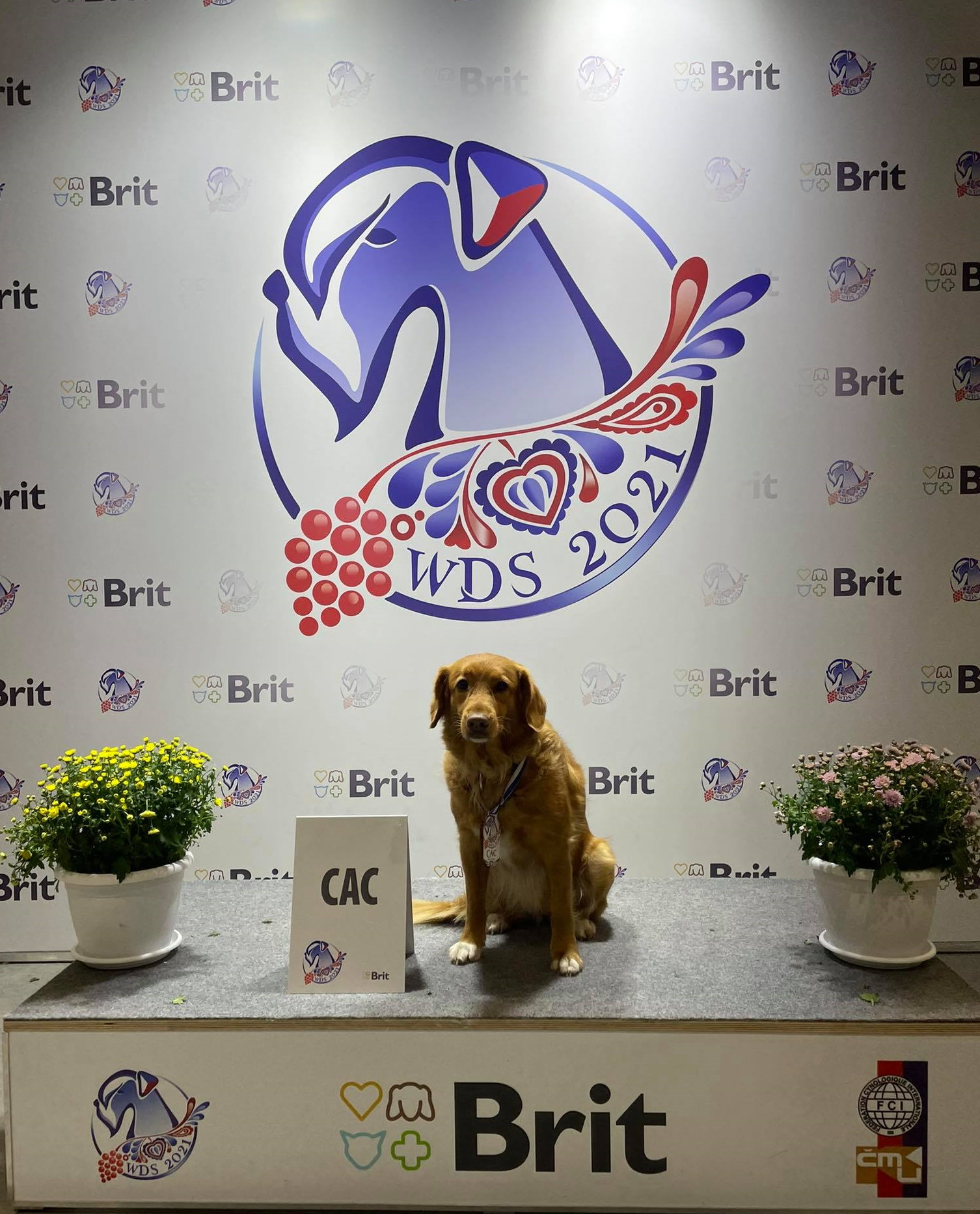 1. října byla největší událost tohoto roku a to světová výstava psů v Brně. Moc jsem se na to těšila, ale jak už to bývá, bohužel jsem nemohla jet. Naše Klárka měla zánět obou uší a velké horečky. Nakonec nám bylo líto peněz za přihlášku a tak můj manžel naložil Abby do auta a naše kamarádka a zároveň úžasná ředitelka Toller Klubu - Verča Kianičková mi pomohla a Abby vystavila. Byl z toho obrovský úspěch a Abby ačkoliv byla stále bez srsti, třídu otevřenou vyhrála a dovezli jsme si ze světové výstavy V1, CAC.